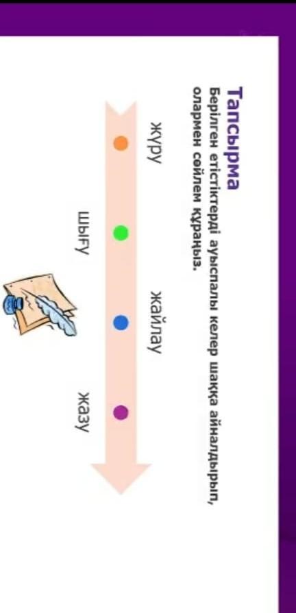 Тапсырма Берілген етістіктерді ауыспалы келер шаққа айналдырып, олармен сөйлем құраңыз.