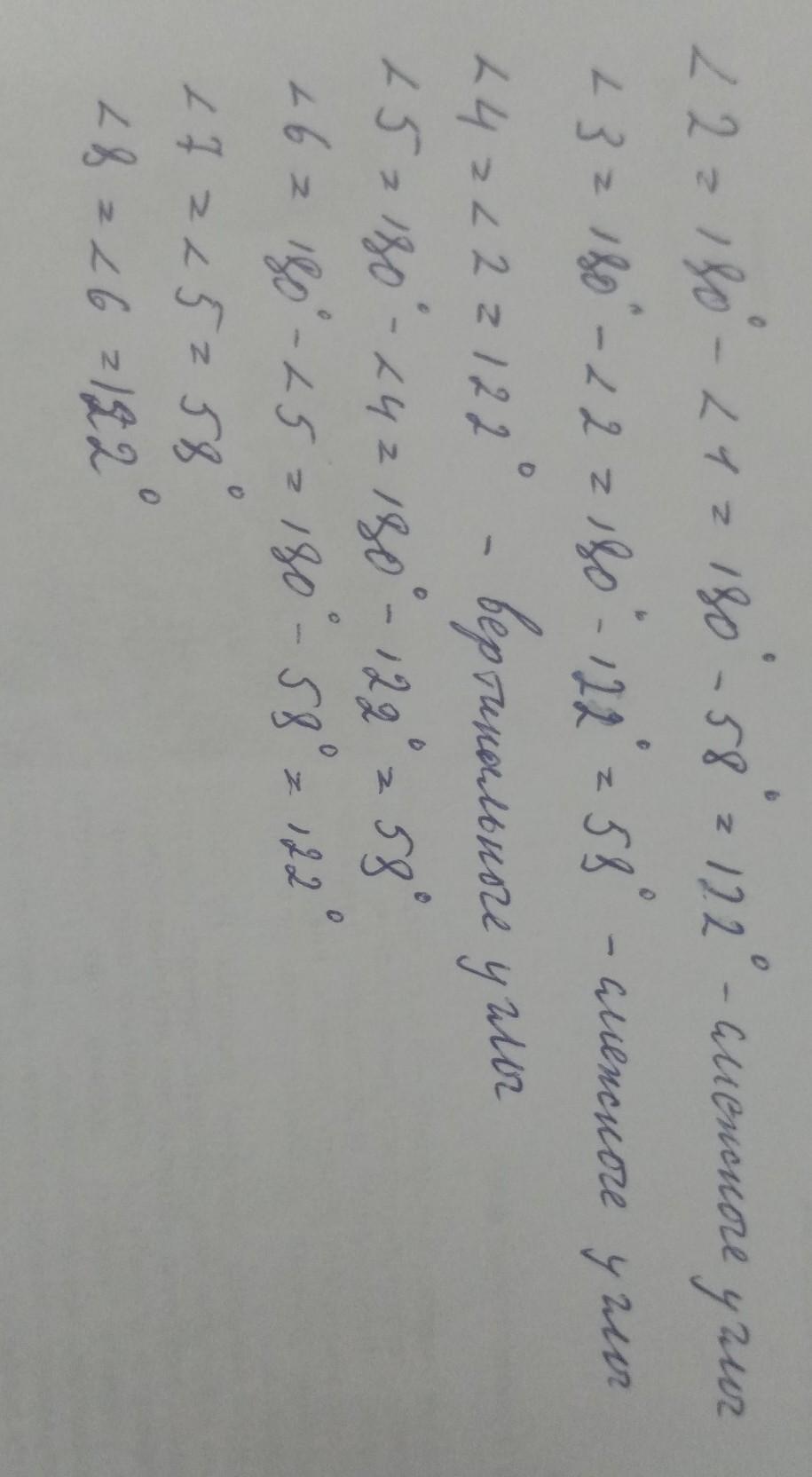 <6=<4=122 градуса,как внутренние накрест лежащие