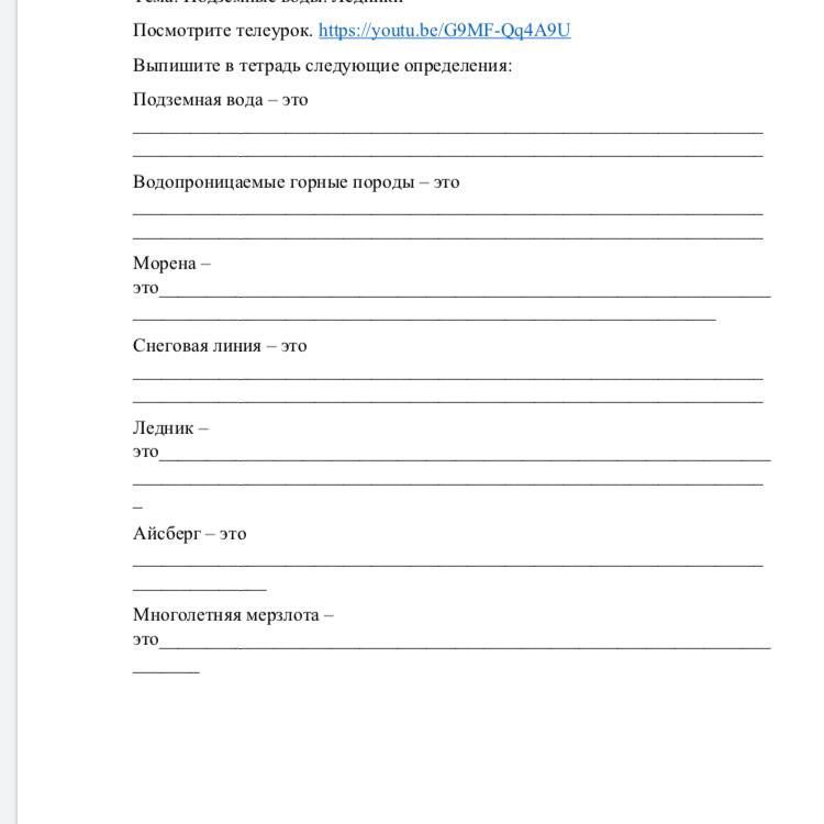 1.Подзе́мные во́ды — воды, находящиеся в толще горных пород верхней части земной коры в жидком, твёрдом и газообразном состоянии.