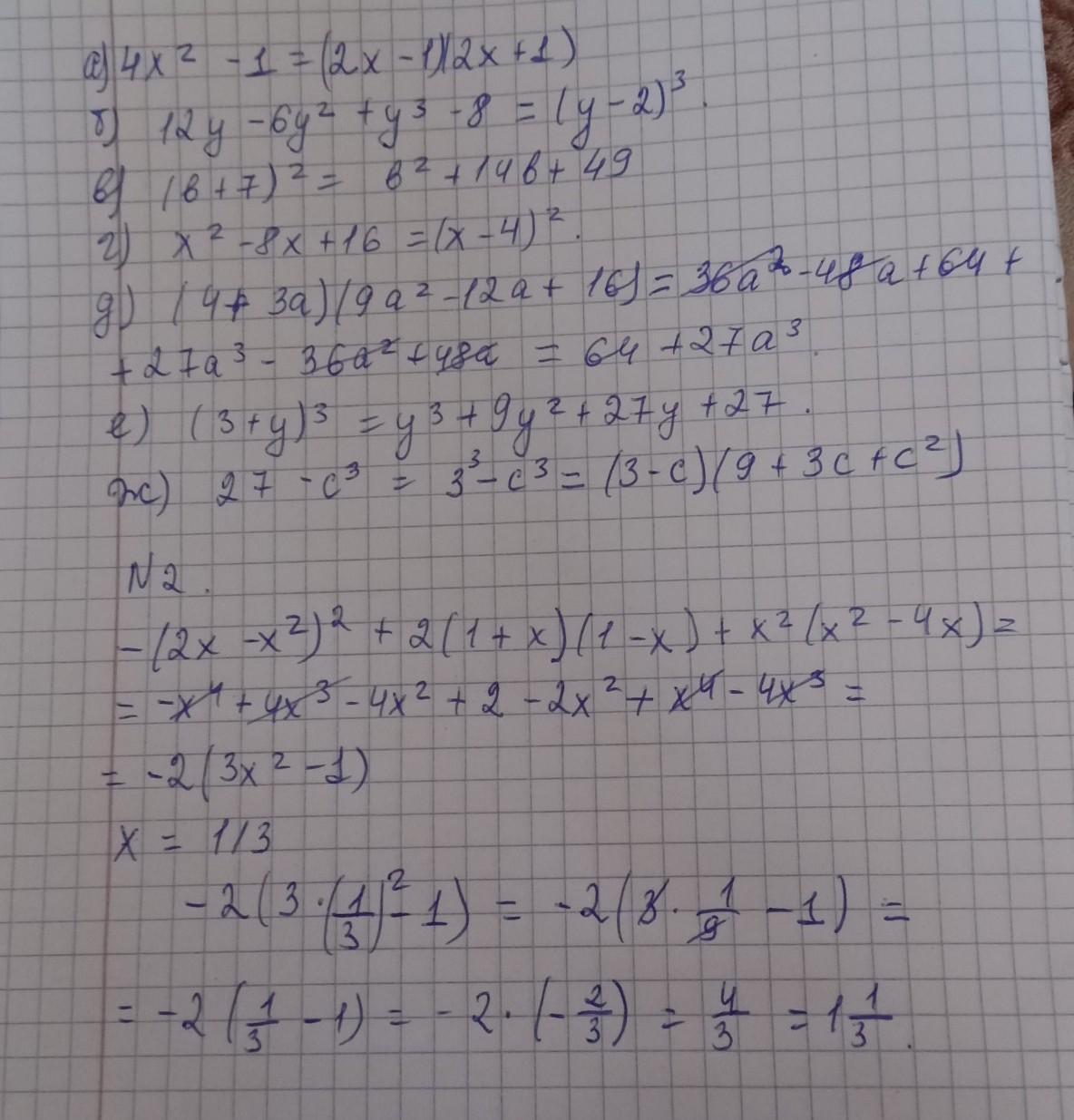 −(2х – х2)2 + 2(1 + х)(1 – х) + х2(х2-4х)