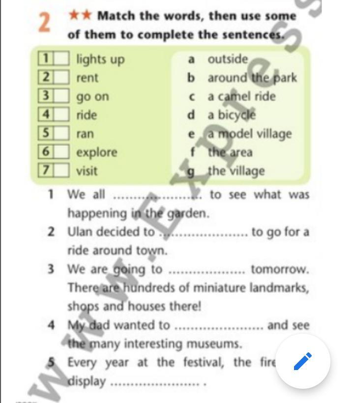 Open your work books at page 50, ex. 2. Match the words, then use them to complete the sentences.