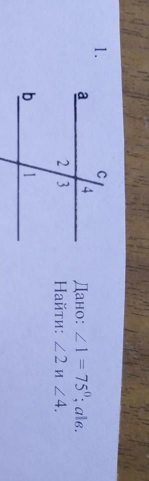<1 и <3 вертикальные, плюс прямые а и в паралельны, это занчит что угол 3 равен углу 1, угол 3,2,4 смежные, это значит что они равны. <4 и <2 = 75°