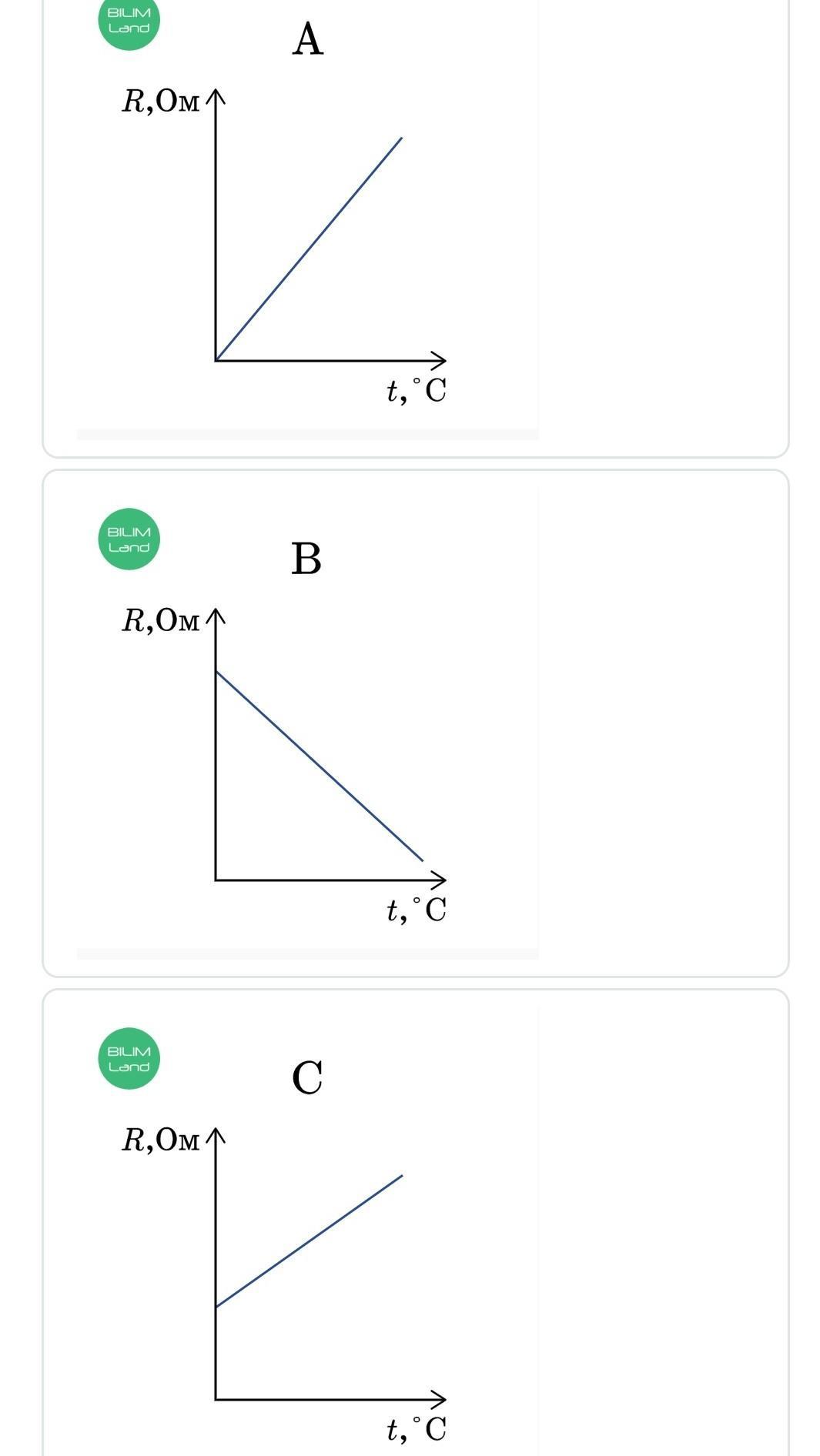 Выбери правильный график зависимости сопротивления в металлах от температуры.