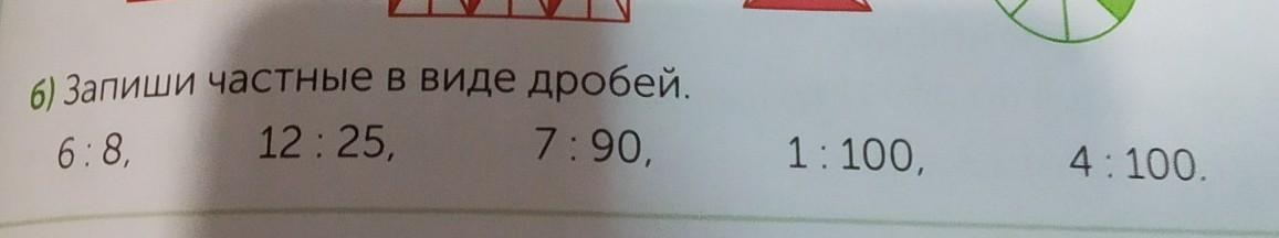 б) Запиши частные в виде дробей.