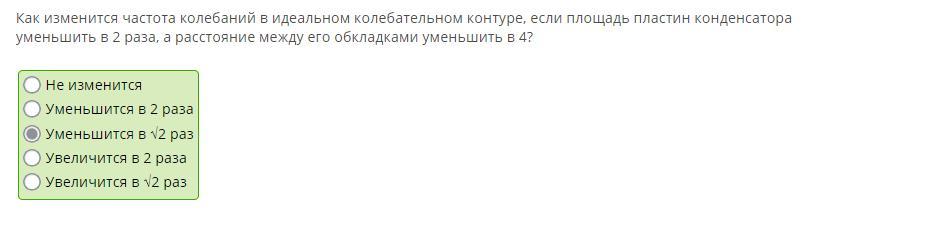 Как изменится частота колебаний в идеальном колебательном контуре, если площадь пластин конденсатора уменьшить в 2 раза, а расстояние между его обкладками уменьшить в 4?