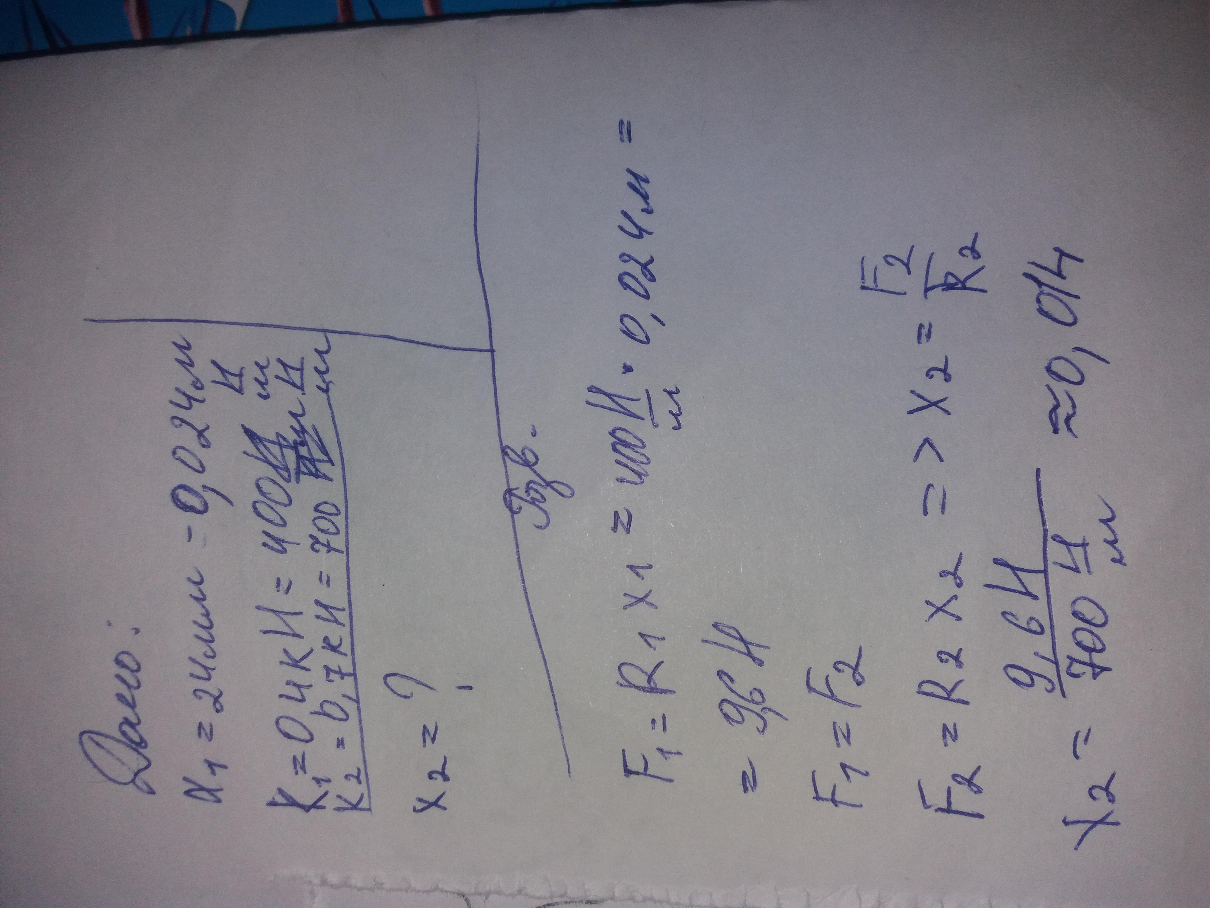 Пружину жорстокістю 0,4 кН стиснули на 24 мм., на скільки можна стиснути пружину жорстокістю 0,7 кН? Будь Ласка!!! Терміново!!!!