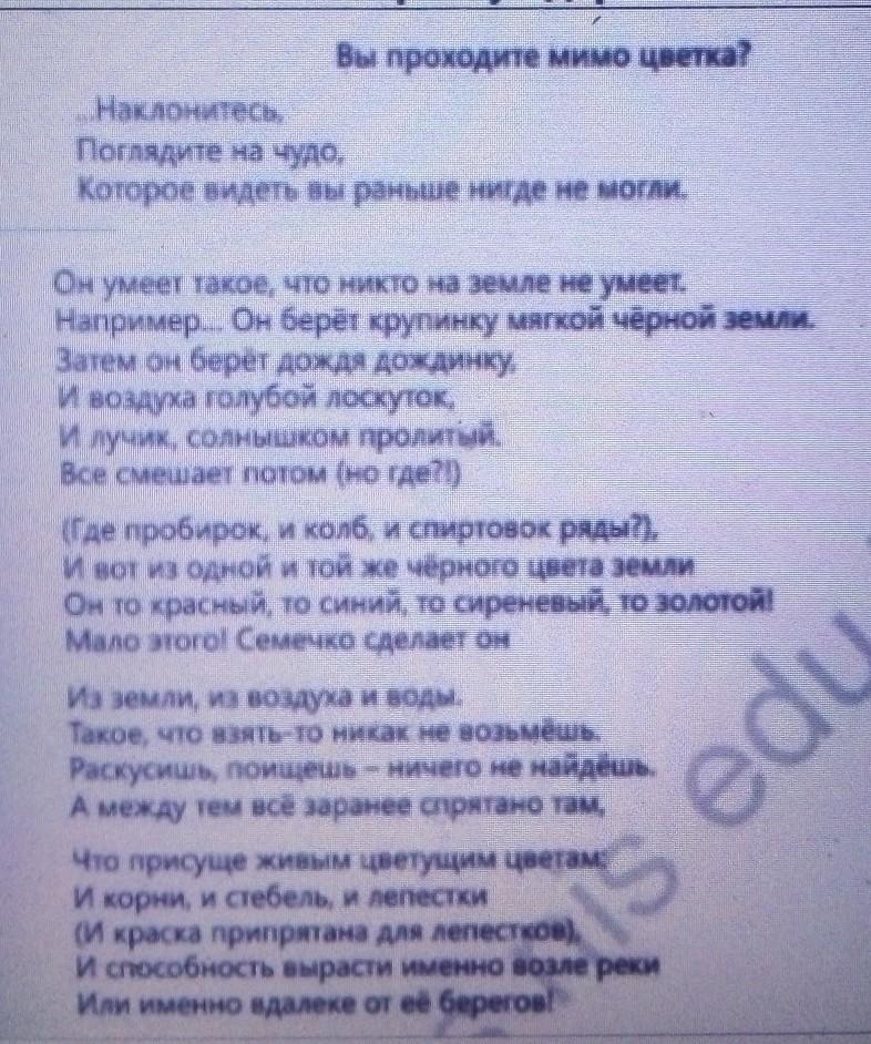 основная мысть текста: насколько точно, красиво, безупречно все придумала и создала природа. Цветы живые организмы, часто им приходится выживать, но какие всёже они красивые и сильные, они проживают на нашей земле, имеют прекрасный аромат, цвет и форму. Способны размножаться (семена)