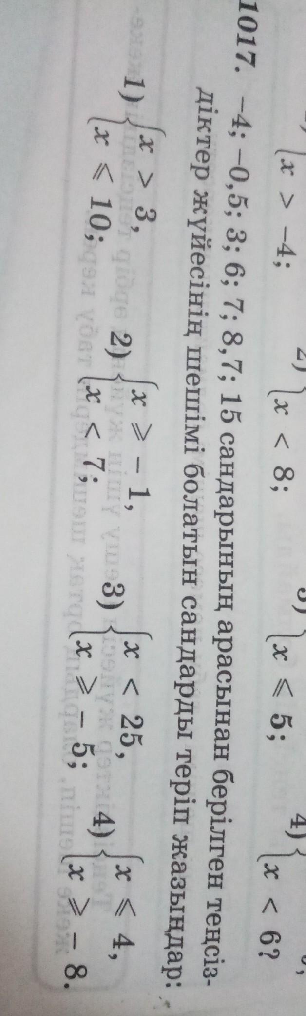 сандарының арасынан берілген теңсіздіктер жүйесінің шешімі болатын сандарды теріп жазындар