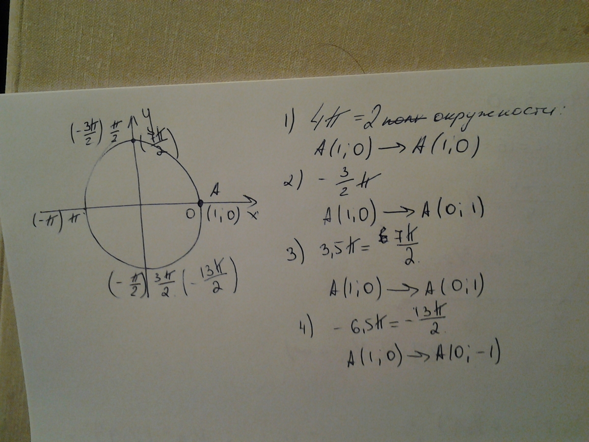 найти координаты точки единичной окружности полученной поворотом точки (1:0) На угол
