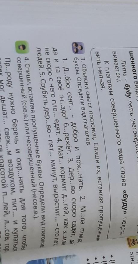 Сеять ( несов.в), пожинать( несов.в), бережёт ( сов.в), садят( сов.в), едят( сов.в), кормит(сов.в), срубить (несов.в), выростить ( несов.в)