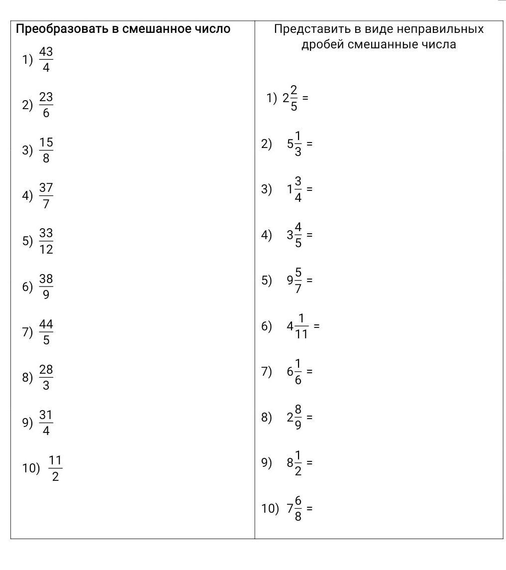6) 38/9 = 4 2/9 6) 4 1/11 = 45/11