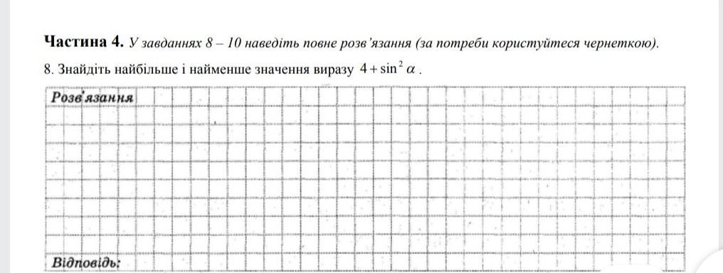 Тогда наименшим значением будет 4, так как функция должна находиться в промежутке от