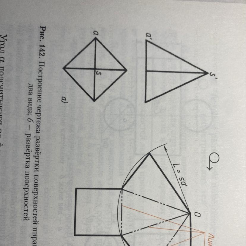 2) Из точки О провести дугу радиусом, равным отрезку s¹a¹, т.е. боковому ребру пирамиды.