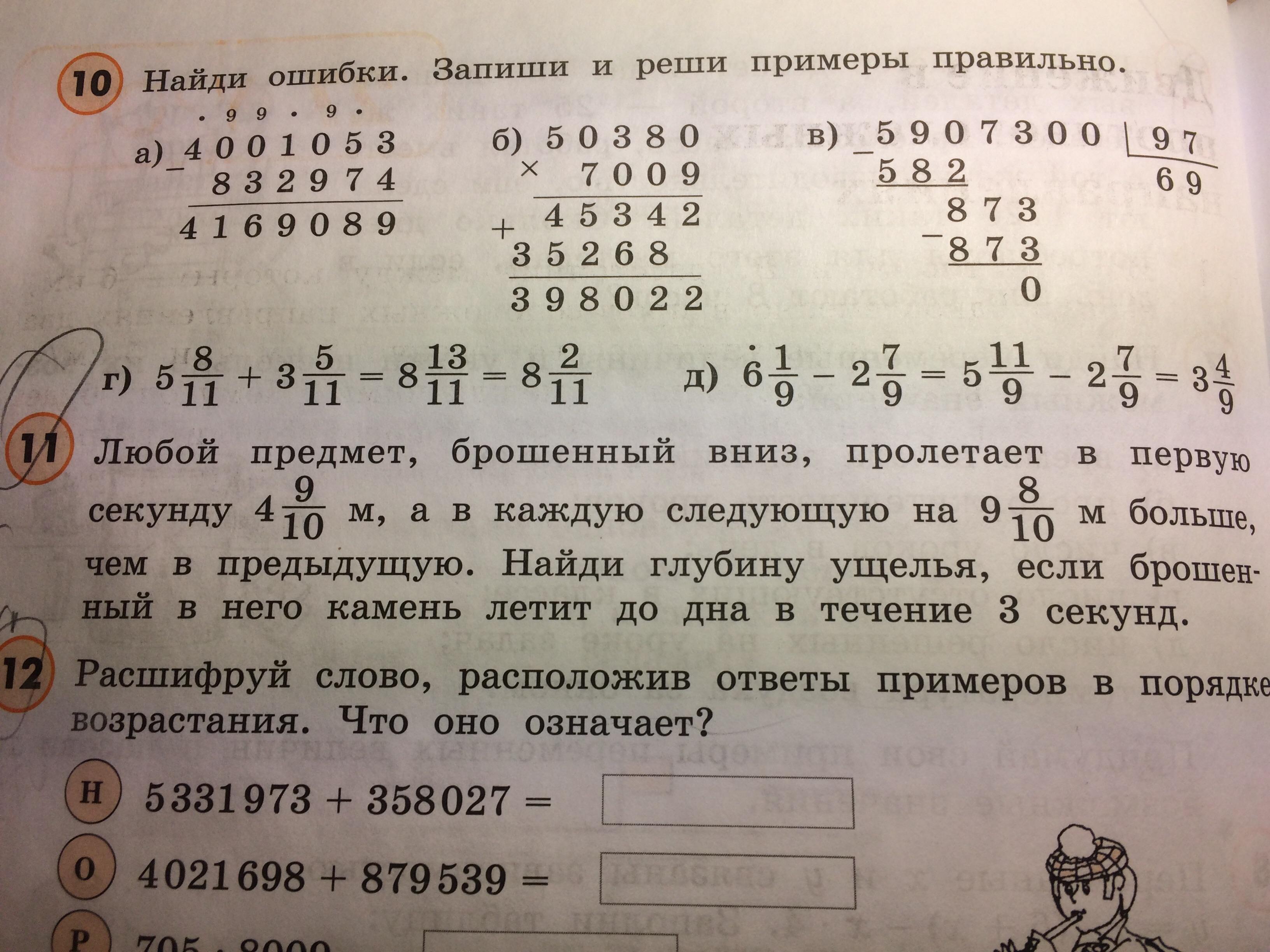 3) 4 9 /10 + 14 7 /10 + 24 5 /10 = 18 16 /10 + 24 5 /10 = 42 21 /10 = 43 11 /10 = 44 1 /10 (м) − глубина ущелья.