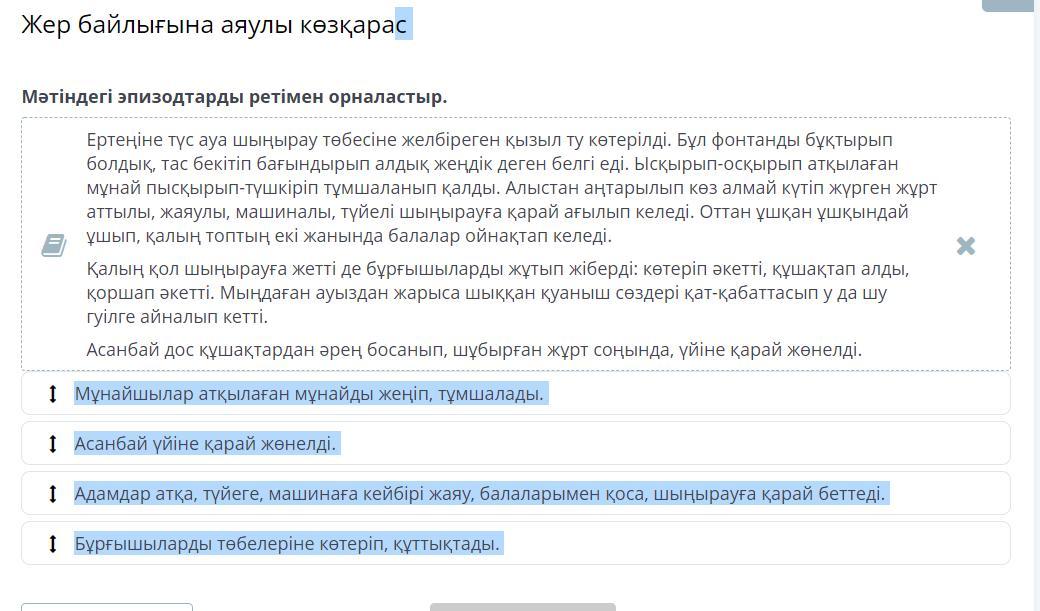 2.Адамдар атқа,түйеге,машинаға кейбіру жаяу,балаларымен қоса,шыңырауға қарай беттеді.