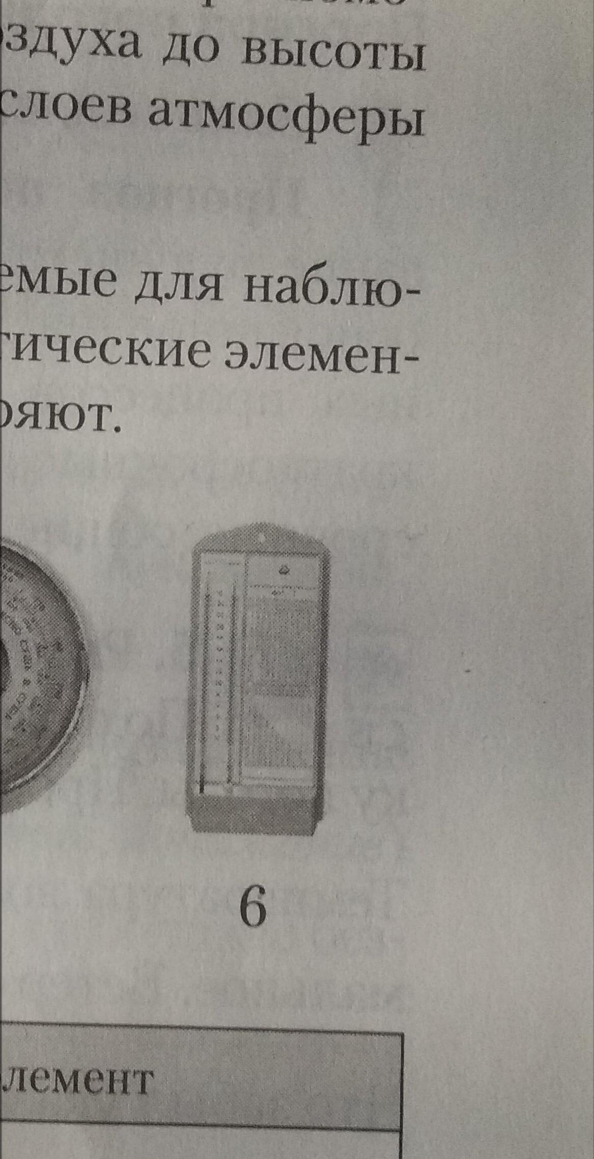 Барометр - прибор для измерения атмосферного давления. Анемометр - прибор для измерения силы и скорости ветра. Облакомер - прибор для определения высоты нижней границы облаков. Термограф - регистратор изменения температуры воздуха и воды.