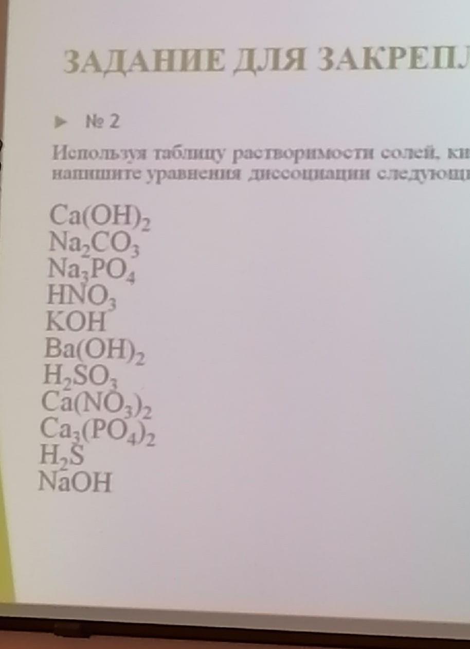 использую таблицу растворимости солей, кислот,оснований,напишите уравнения диссоциации следующих веществ: