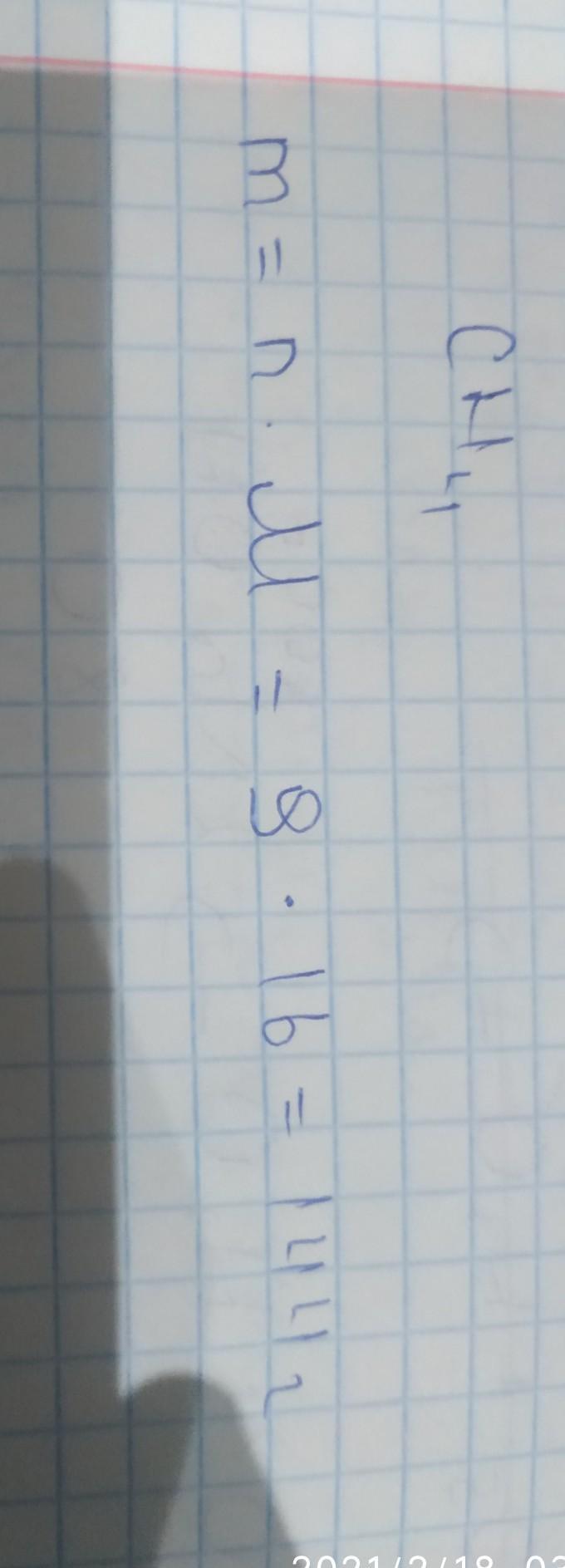 какую массу вещества надо взять если известно что количество вещества метана взяли 9 моль СН4- метан
