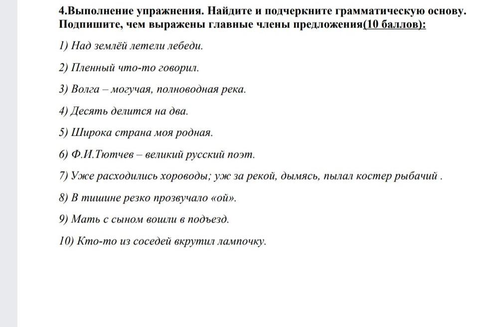 4)Десять(подлежащее,числительное), делится(сказуемое,глагол)