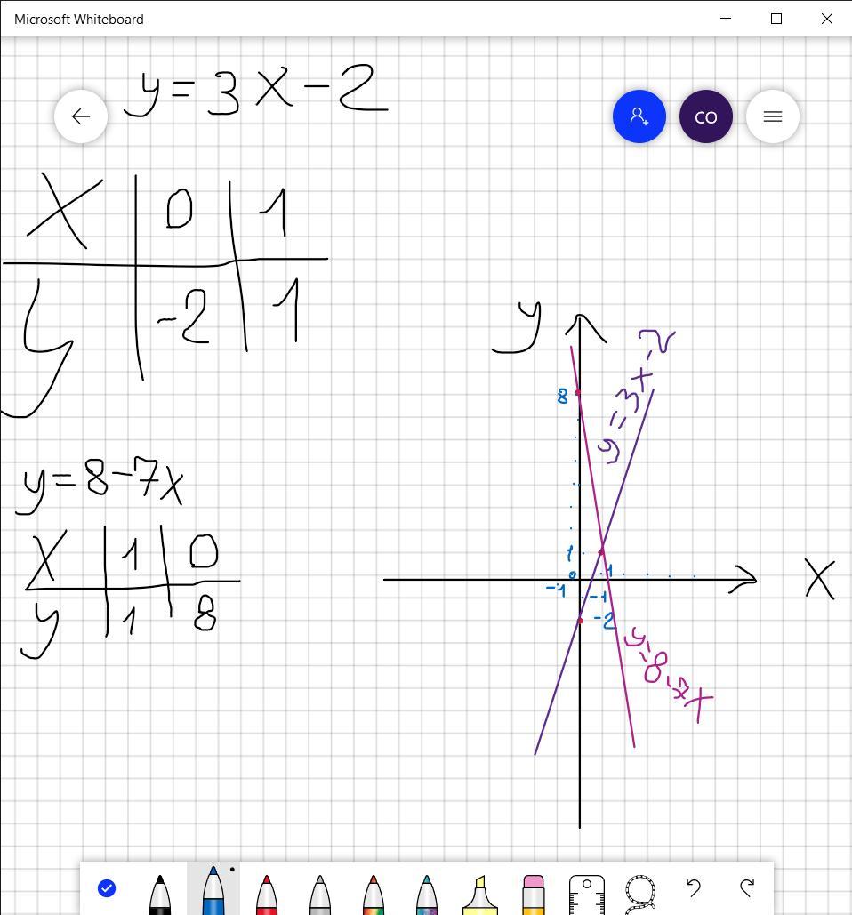 Для построения графика прямой достаточно знать координаты двух точек, которые лежат на ней