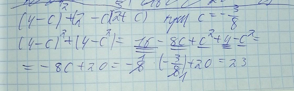 (4-с)²+(2-с)(2+с)=(4²-2*4*с+с²)+(2*2+2с-2с-с²)=16-8с+с²+4-с²=20-8с