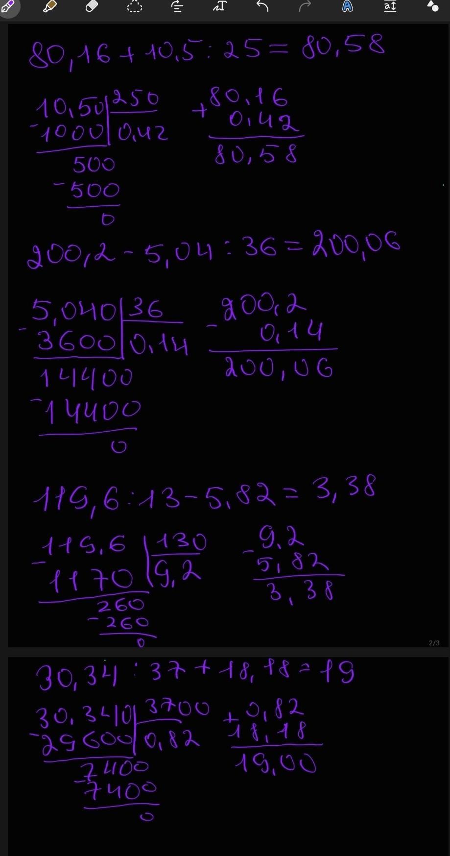 3) 119,6 : 13 - 5,82;