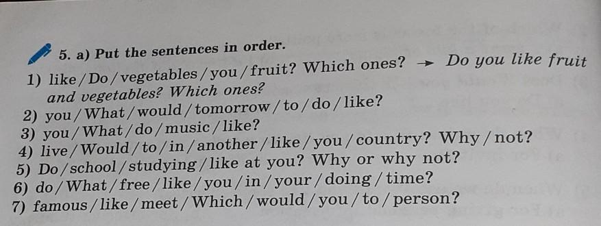 2 what would you like to do tomorrow? 3 what music do you like? 4 would you like to live in another country? why not? 5 do you like studying at school? why or why not? 6 what do you like doing in your free time? 7 which famous person would you like to meet?