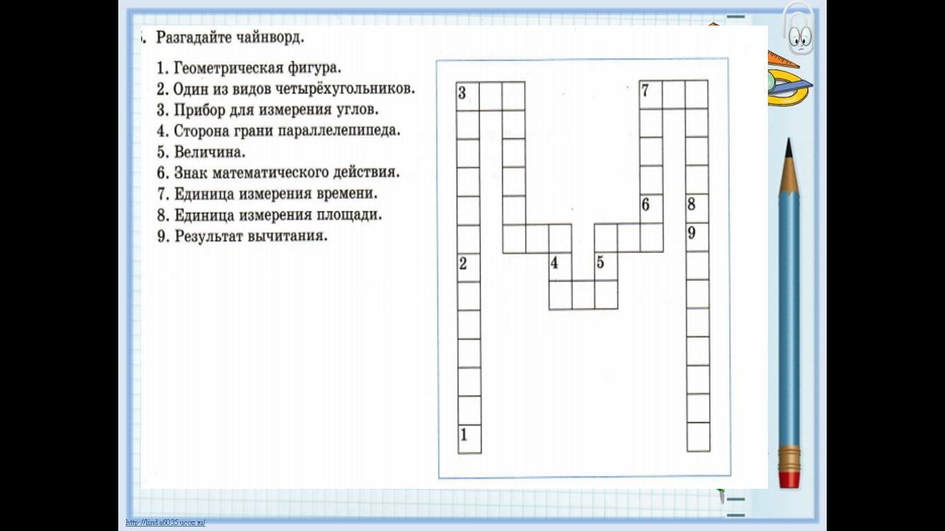 Ответ: отрезок-квадрат-транспортир-ребро-объем-минус-секунда-ар-разность