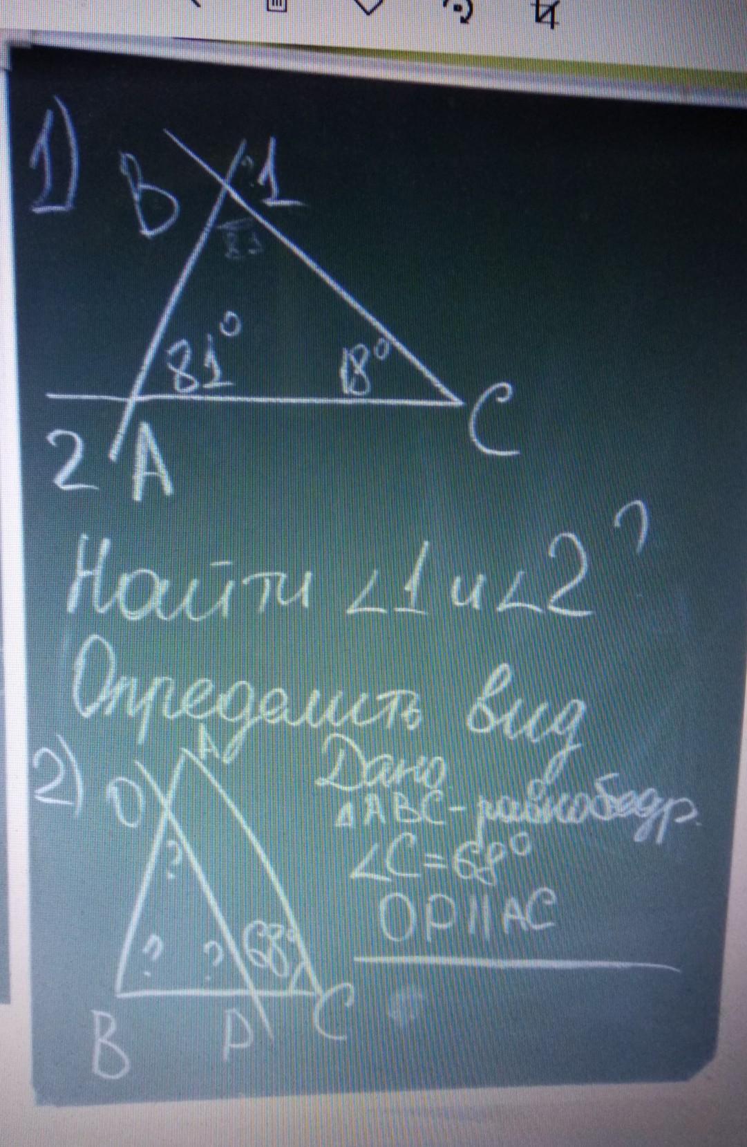 Ответ:1)∠1=99°,∠2=81° 2)Треугольник тупоугольный