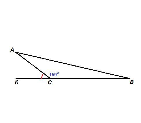 В треугольнике ABC угол с равен 159“. Найдите внешний угол при вершине с.