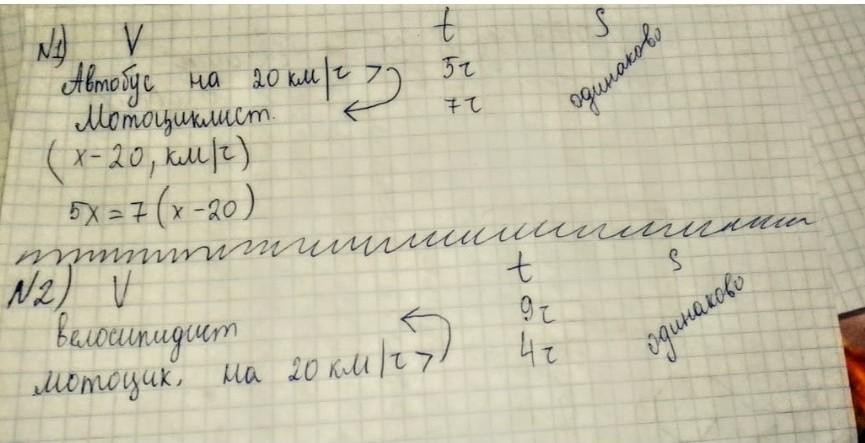 Задача: мот и вел проехали одно и тоже расстояние.Мот. ехал 4ч со скоростью на 20км/ч быстрее чем велосип.Найти расстояние и скорости обоих, если велос.преодалел путь за 9ч.