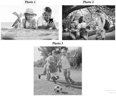 1)At the first photo children are chatting with their friends.