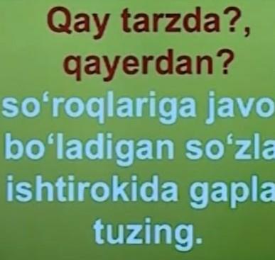 qay tarzda? qaerdan? soroqlariga javob boladigan sozlar ishtirokida gaplar tuzing? помогите пожалуйста!!!