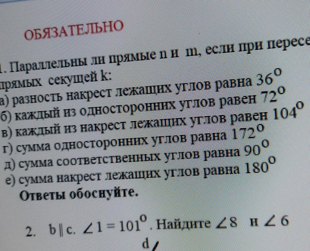 г)нет; прямые параллельны, если сумма односторонних углов равна 180°