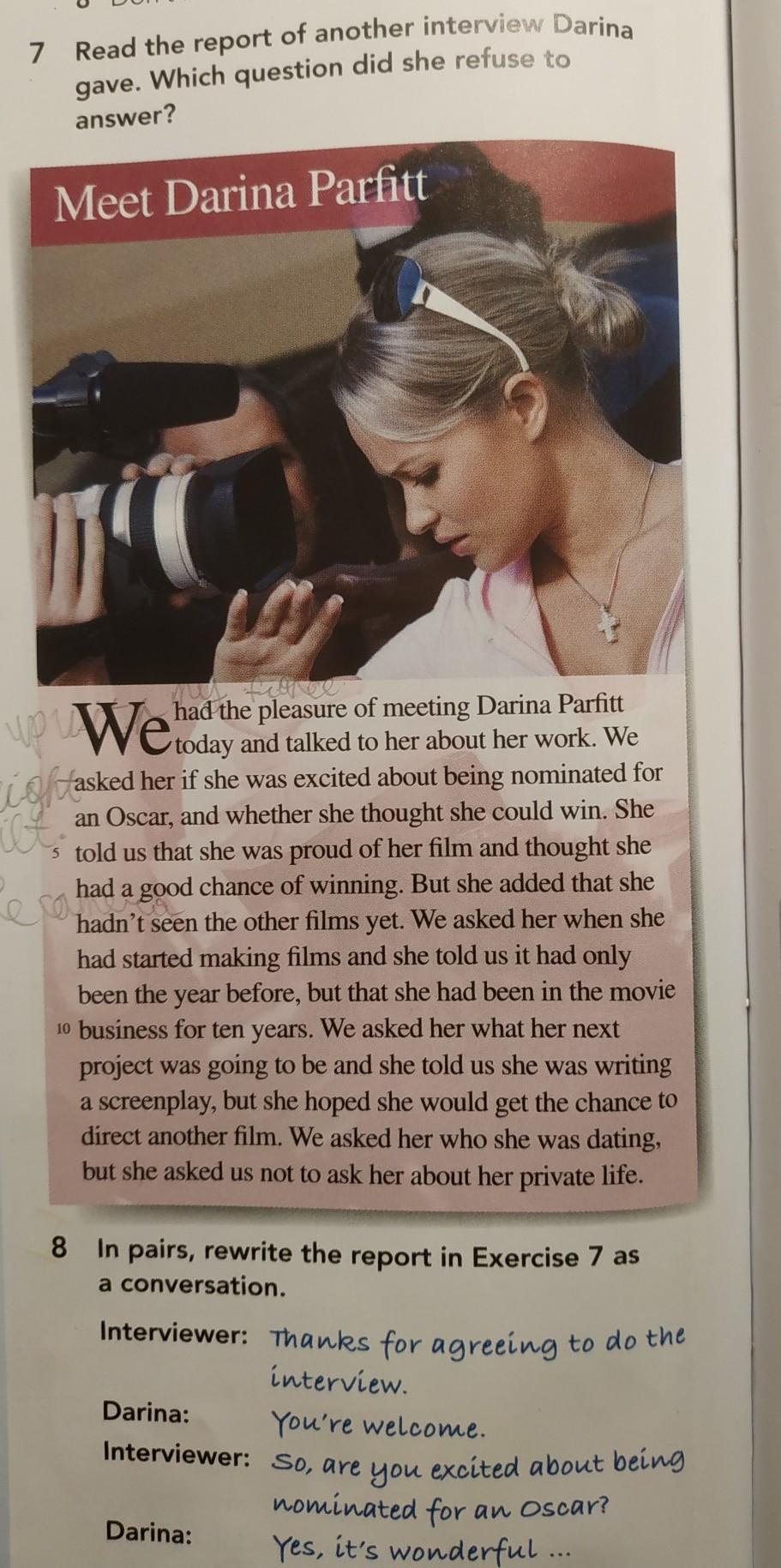 так напиши где Дарина а где человек который брал интервью а то так непонятно