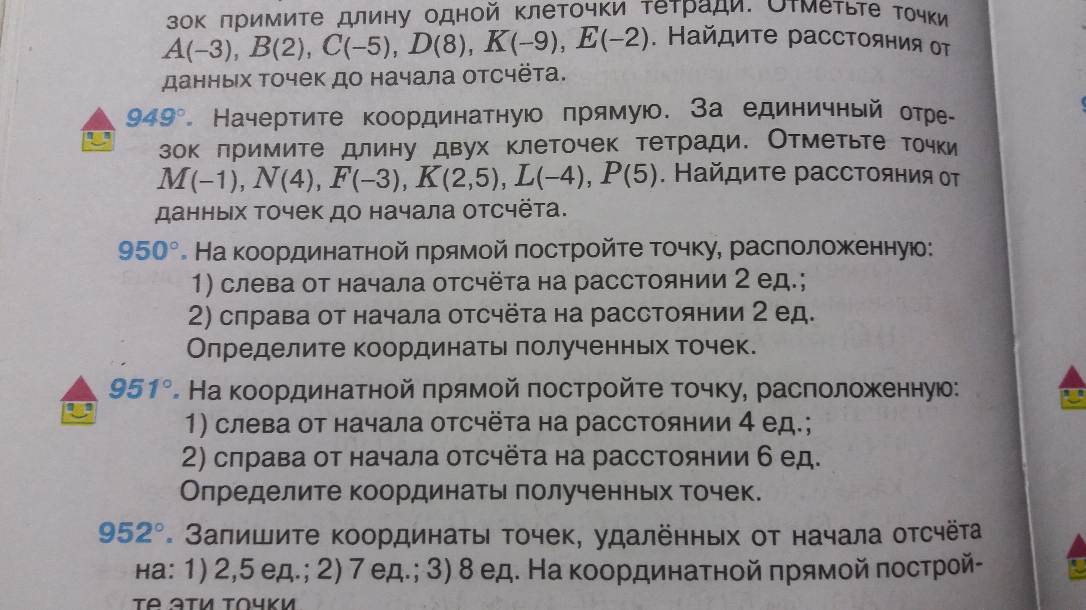 1)слева от начала отсчёта на расстоянии 4 ед.;