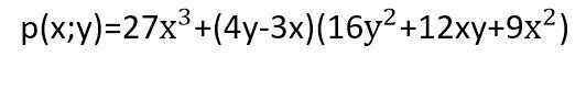 p(x.y) = 27 {x}^{3}  + (4y - 3x)(16 {y}^{2}  + 12xy + 9 {x}^{2} ) =  \\  = 27 {x}^{3}  +   {(4y)}^{3}  -  {(3x)}^{3}  =  \\  = 27 {x}^{3}  + 64 {y}^{3}  - 27 {x}^{3}  = 64 {y}^{3}  \\ \binom{x = 2.376}{y =  - 1}  \\ p(x.y)=64 \times  {( - 1)}^{3}  =  - 64