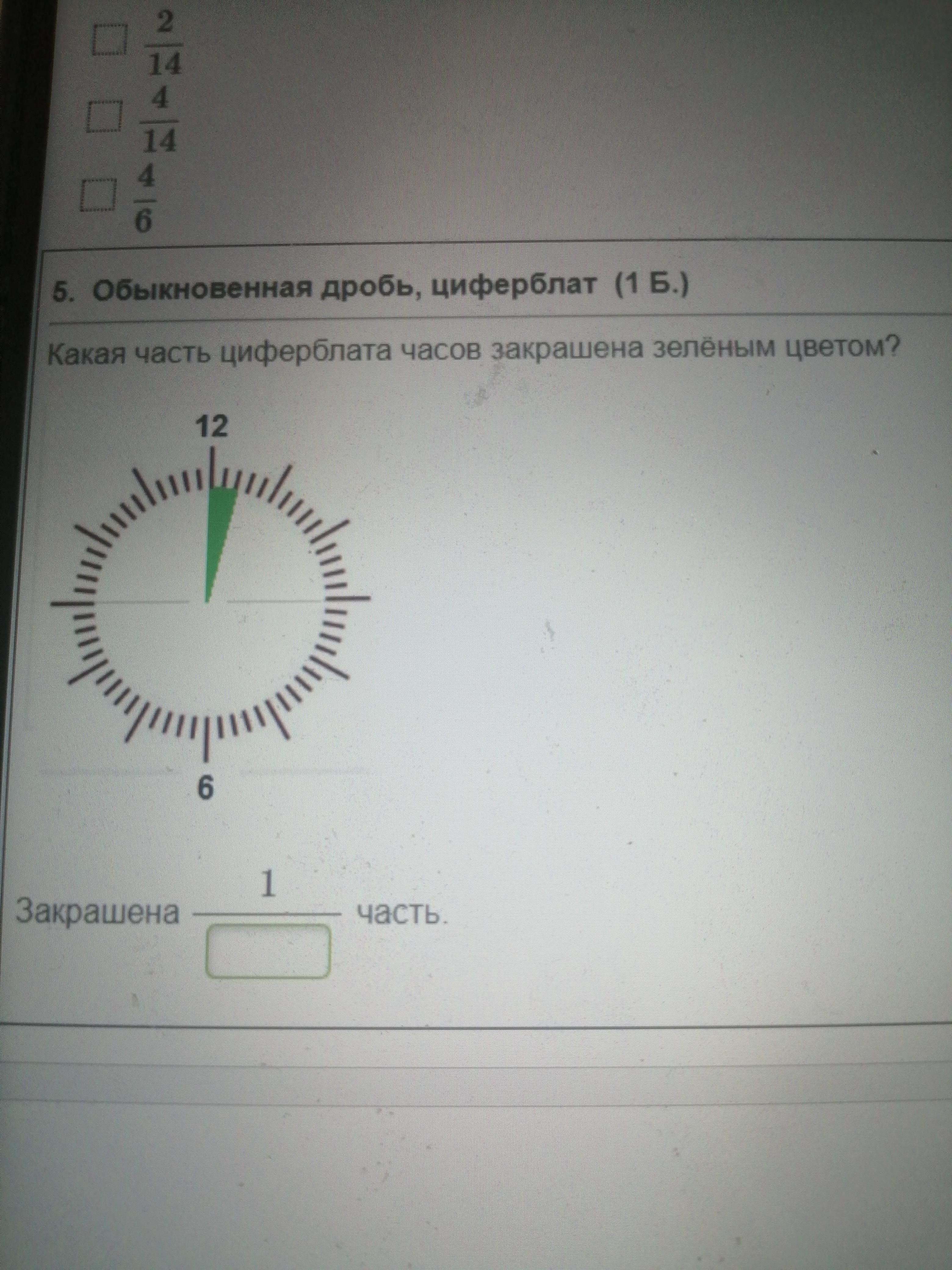 циферблат разбит на минуты, их в часе - 60, значит и делений тоже 60. Закрашены 3/60 части, сокращаем на 3, получаем 1/20: