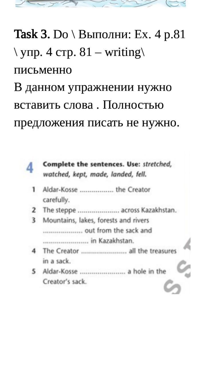 Task 3. Do \ Выполни: Ex. 4 p.81 \ упр. 4 стр. 81 – writing\ письменно