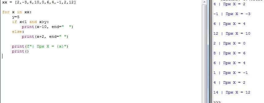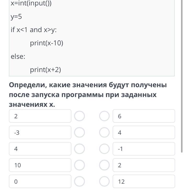 Определи, какие значения будут получены после запуска программы при заданных значениях x.