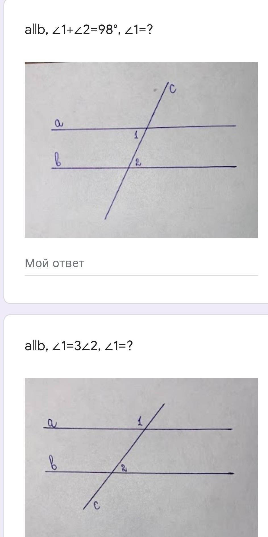На 1 фото углы накрест лежащие, поэтому 98/2=49