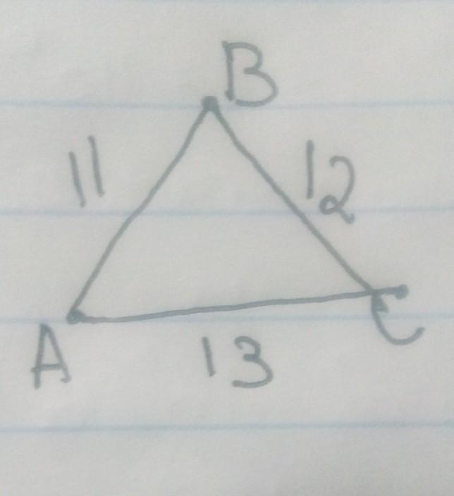 В треугольнике ABC AB = 11 см, BC = 12 см, AC = 13 см. Определи наименьший угол. Ответ: .
