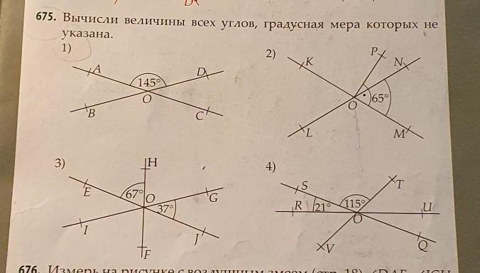 ВОС=AOD=145 как вертикальные, DOC=AOB=AOC-AOD=180-145=35 как смежные и HOG=IOF=EOJ-(EOH+GOJ)=180-(67+37)=76, FOJ=EOH=67 как вертикальные , EOI=GOJ=37 как вертикальные