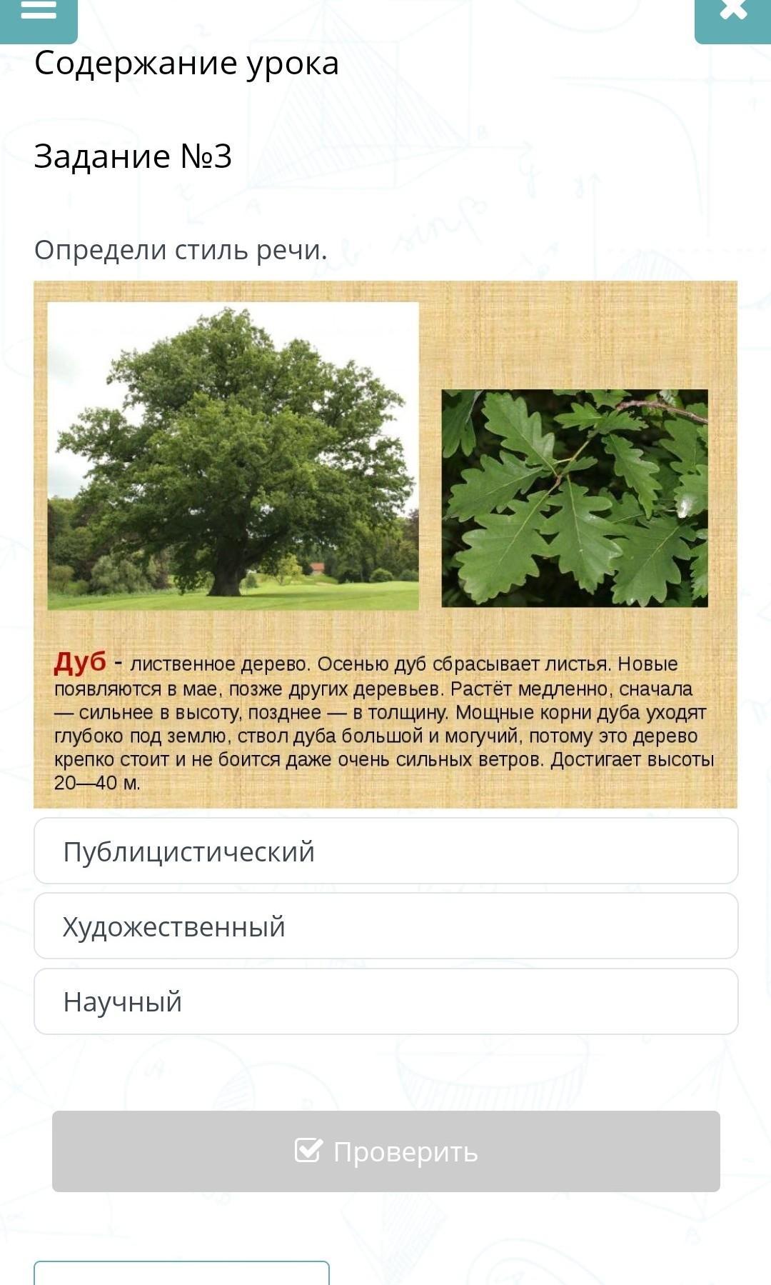 Это научный текст) Так как рассказывают научную инфу про дуб
