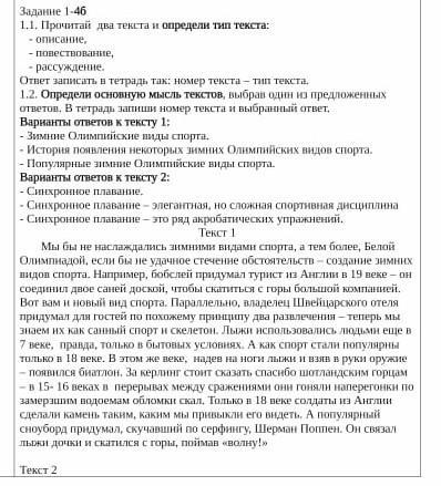 2 задание: 1 текст - История появления некоторых зимних Олимпийских видов спорта.