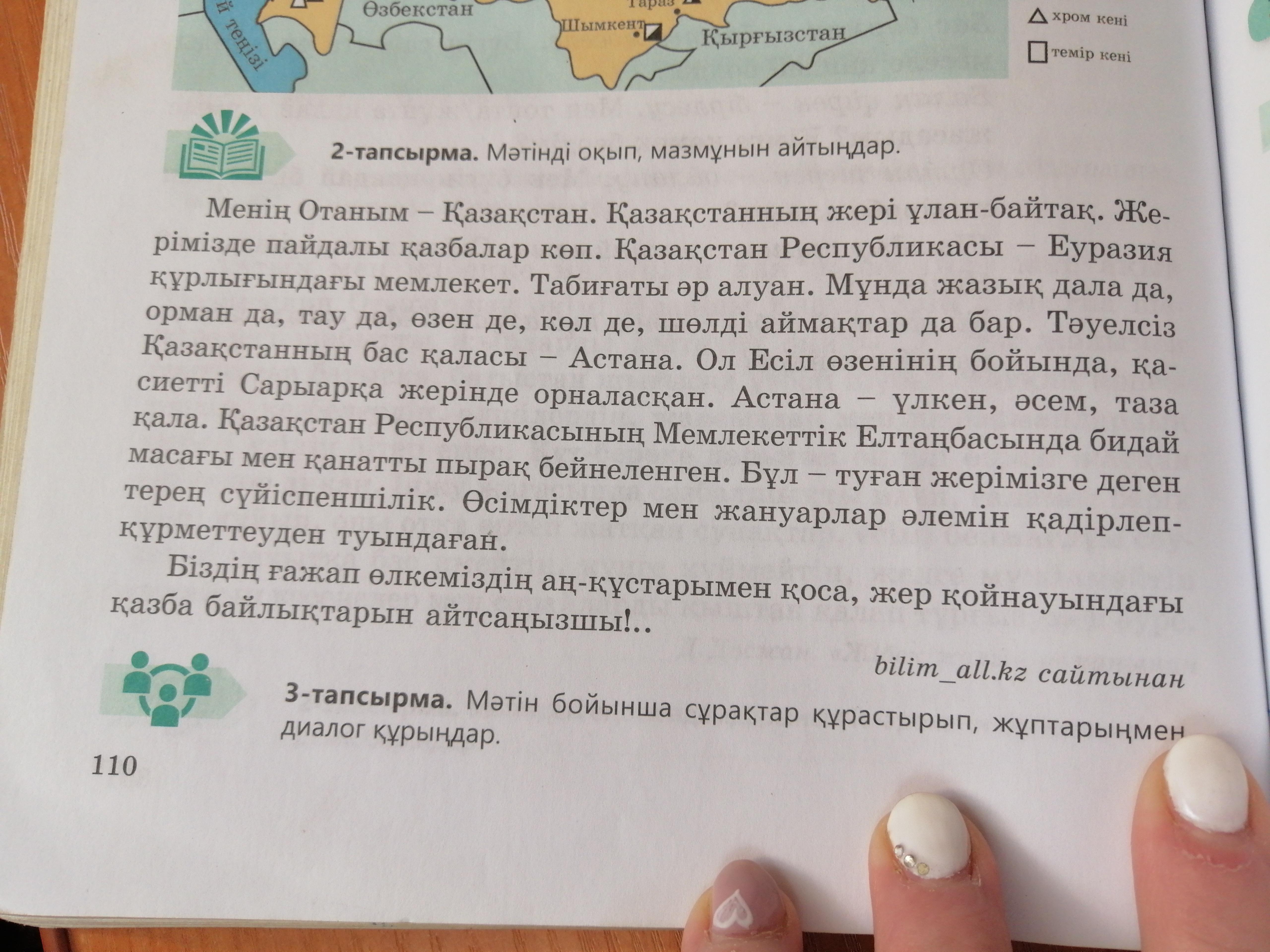2-тапсырма.Мәтін бойынша 5 сұрақ құрастырып жазыңдар. Составьте 5 вопросов по тексту.