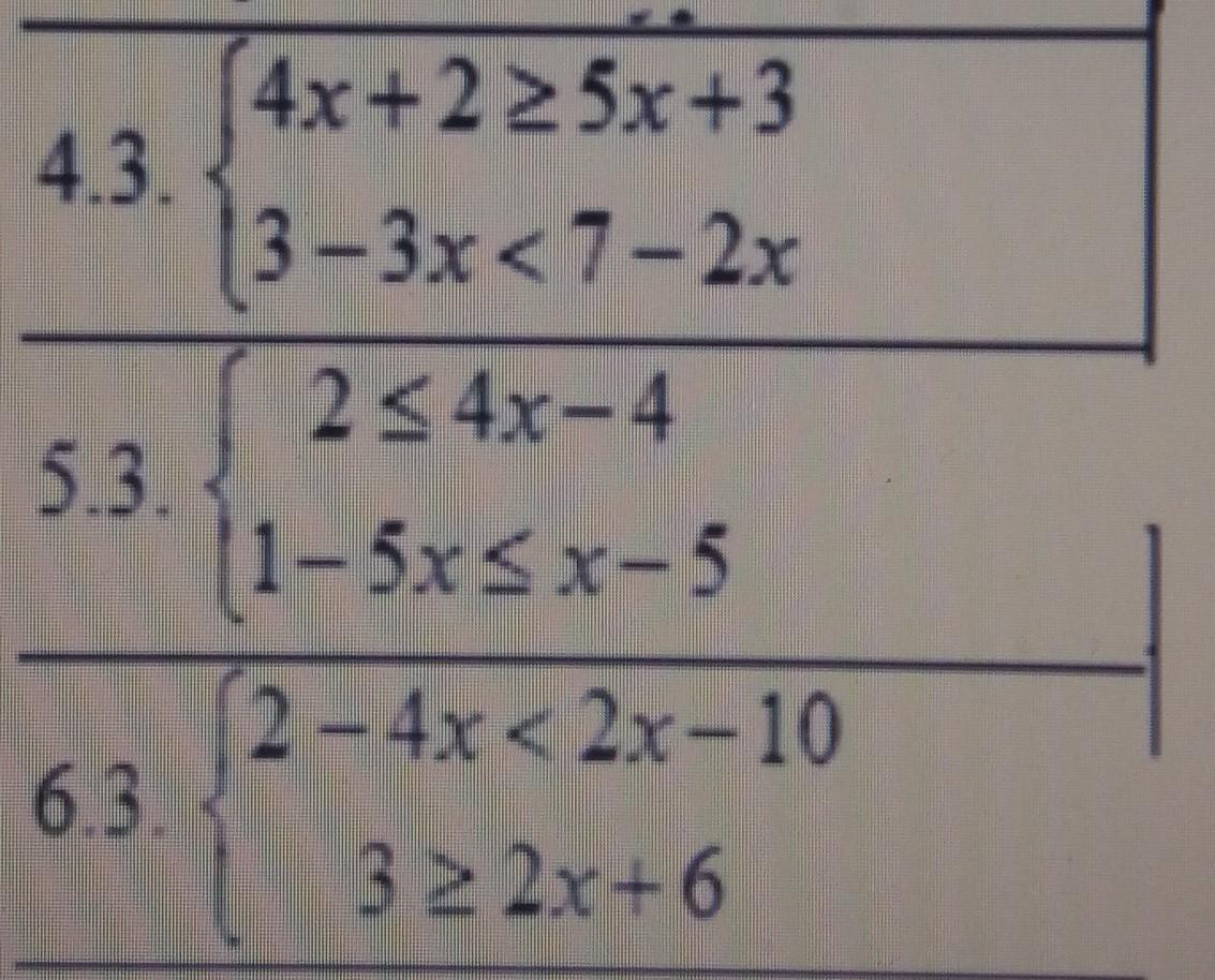 4x +2 ≥ 5x +3 ⇒ -1 ≥ x