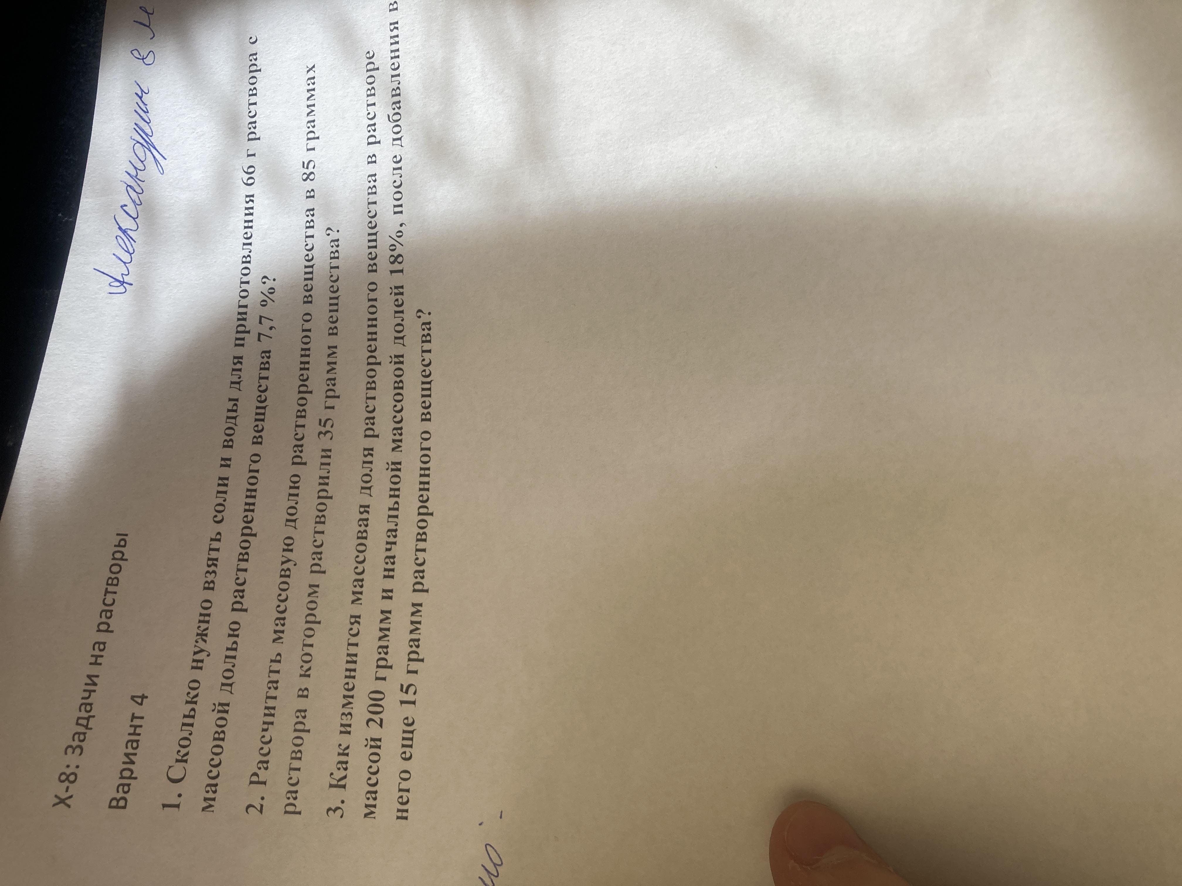 2)0.66×7.7=5.082(г) - 7.7% растворённого вещества (соли)