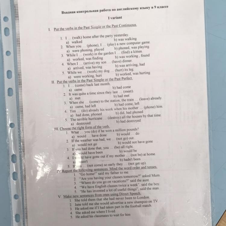 1 task - 1 a 2 b 3 b 4 a 5 a task 2 1a 2 b a 4 a 5 b task 3 1 b 2 a 3 a 4 b 5 hadnt come/ wouldnt have got up task 4 1 my father told me to go home 2 mum asked if I was having classes the next day 3 the aunt asked where I went on vacations 4 the boy said they had.......
