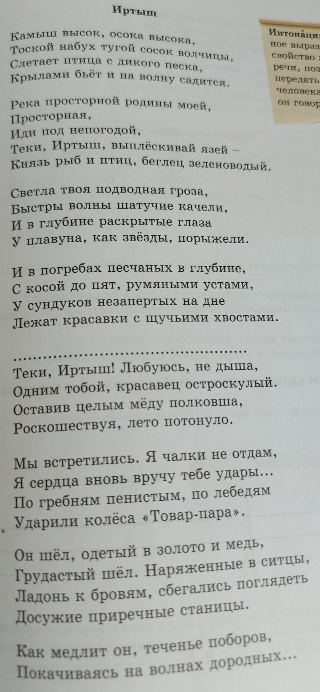 Какие художественные средства использовал автор в стихотворении "Иртыш"? За полните таблицу.